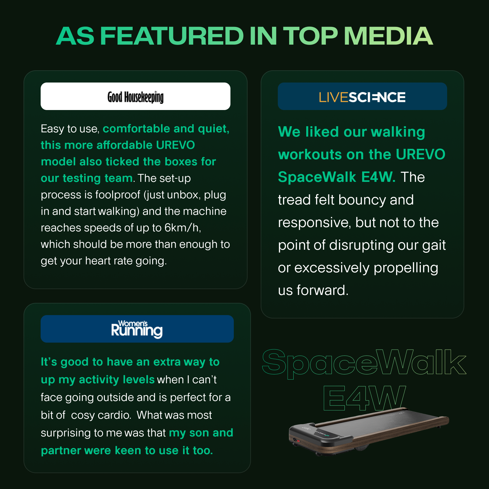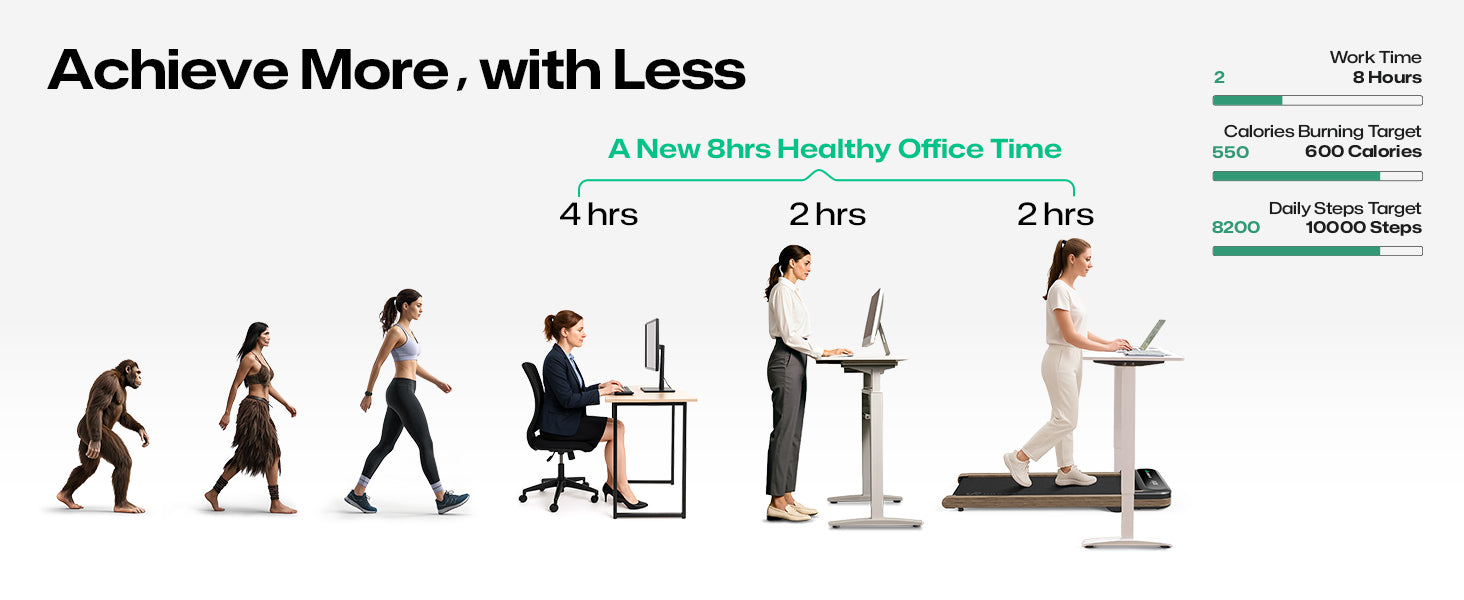 UREVO SpaceWalk E4W features a compact and exquisite body which enables you to walk easily under your office desk.
